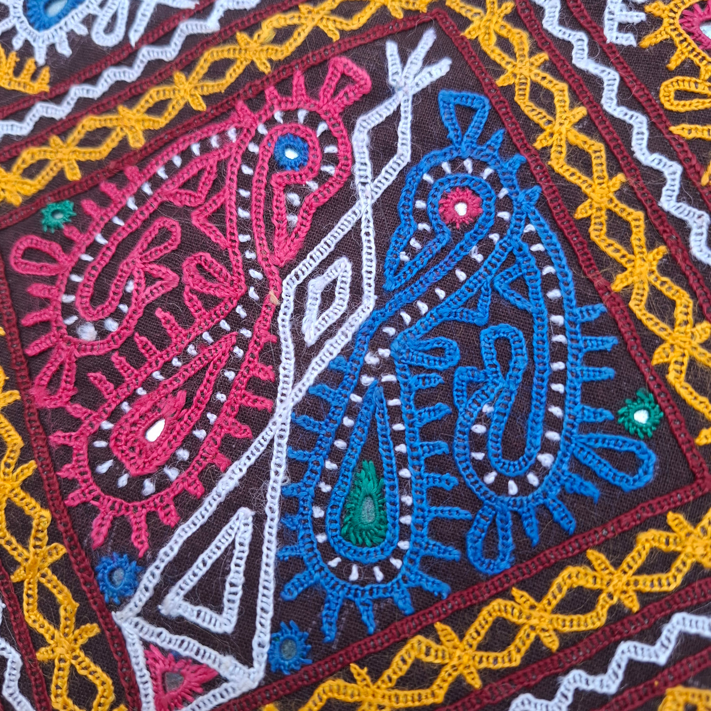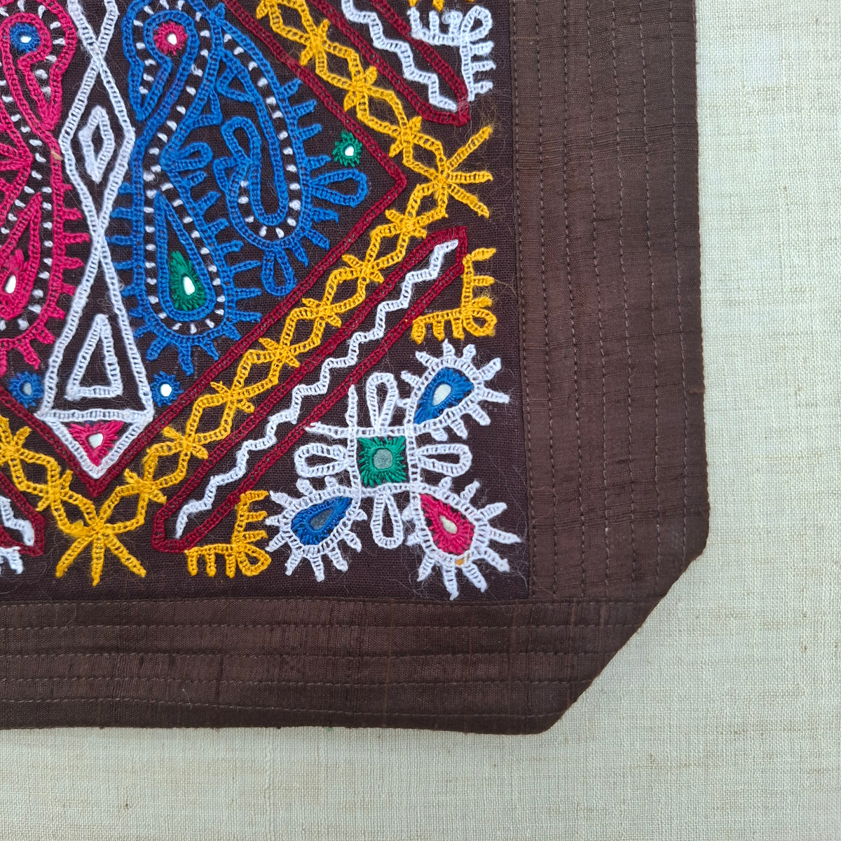 Note: As this product is handmade, slight variations in colour, embroidery, and mirror placement are natural. Colours may also vary due to screen settings.