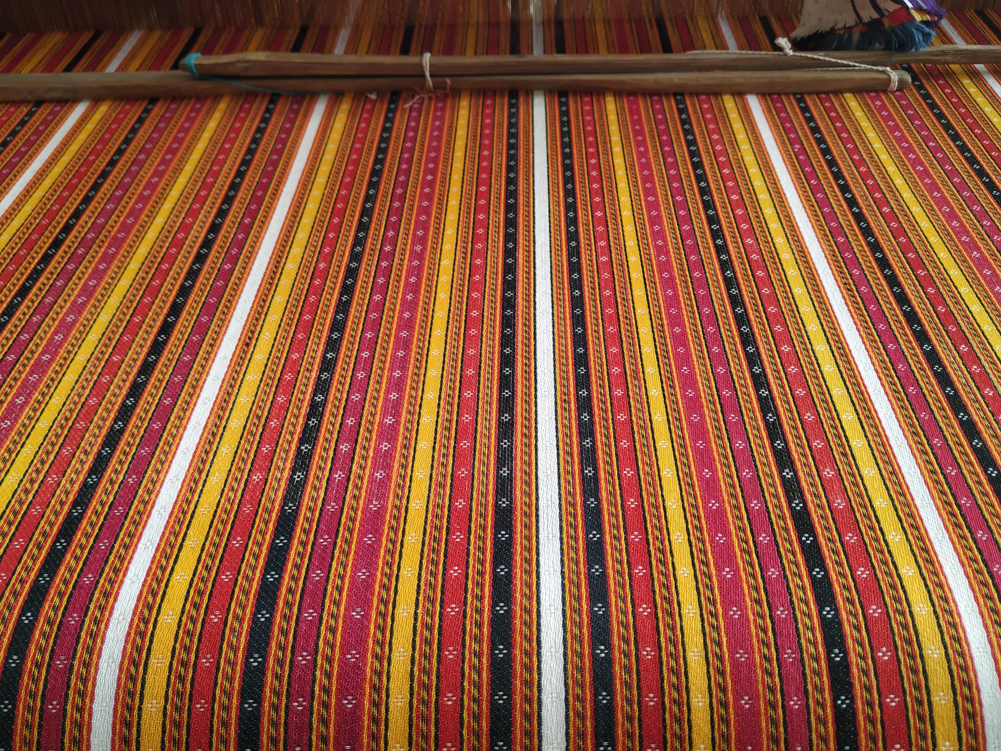 Shrujan’s contribution has been to reintroduce real silk yarn and to revive traditional striped mushroo patterns.