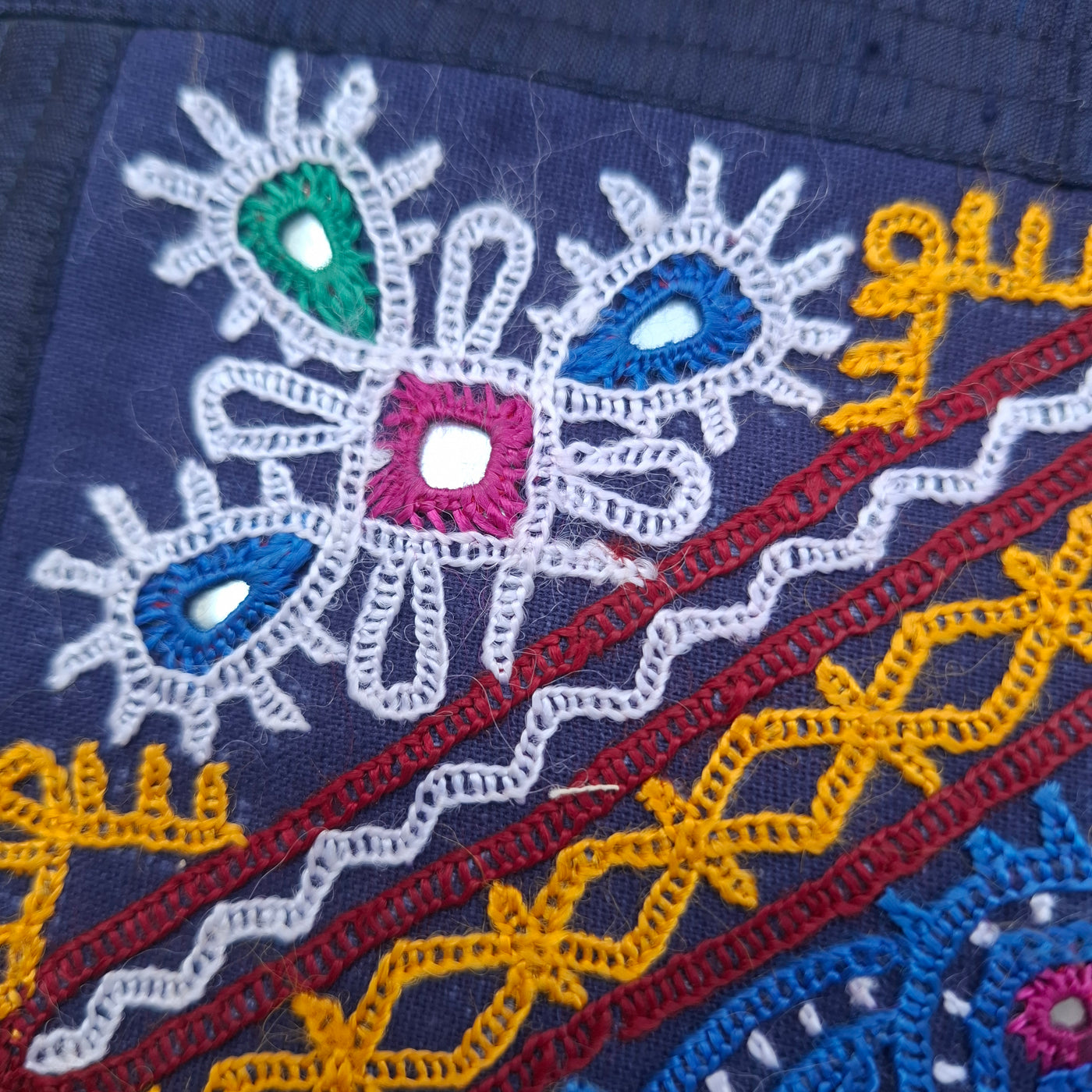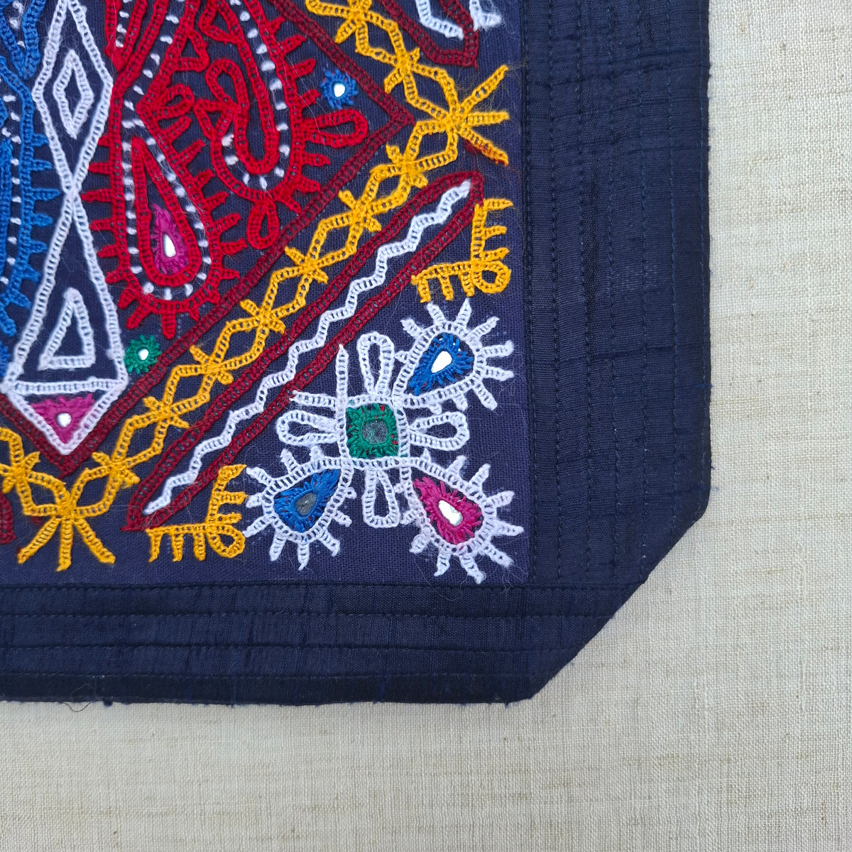 Note: As this product is handmade, slight variations in colour, embroidery, and mirror placement are natural. Colours may also vary due to screen settings.